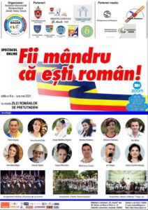 Vineri, 14 mai 2021, ora 19.30, Asociația Interculturală Româno-Elenă „Dacia” Atena, Grecia și Biblioteca Județeană „Gh. Asachi” Iași în parteneriat cu Primăria Municipiului    Iași – Biroul Diaspora, Centrul pentru Cultură și Arte „Carmen Saeculare” Neamț, Consiliul Județean Gorj, Consiliul Județean Teleorman – Serviciul de Cooperare Internă și Internațională, Școala Populară de Arte „Constantin Brâncuși” Târgu Jiu, Școala Internațională de Limba Română Dacia Atena, Grecia vă invită la un eveniment marcant, Spectacolul online: FII MÂNDRU CĂ EȘTI ROMÂN! Ediția a III-a. Spectacolul este dedicat Zilei Românilor de Pretutindeni sărbătorită în avans la începutul lunii mai. Concret, ultima duminică a lunii mai ne oferă prilejul de a celebra Ziua Românilor de Pretutindeni, o zi dedicată celor aflați dincolo de hotare, dar rămași aproape de țara natală, în gând și în suflet.